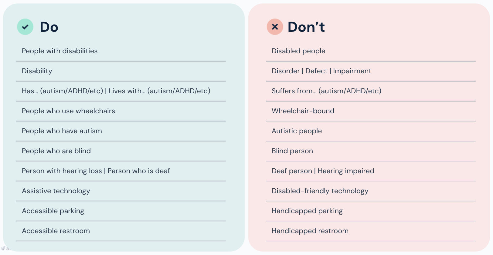 - Aligns with Empowerment: Inclusive language empowers people with disabilities by acknowledging their agency, abilities, and contributions to society.