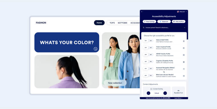 Good web accessibility tools also empower people with disabilities to configure your Webflow website so that it fits their unique abilities. accessWidget, for example, provides visitors with an interface through which they can adjust and even disable a variety of design elements. These include stopping animations, adjusting color contrasts, and enabling a text-only mode.