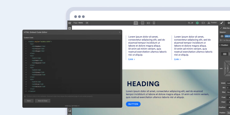 HTML is the building block of any website. Despite being a visual development platform, Webflow provides you with all the necessary tools to build a very solid and accessible structure for your website.