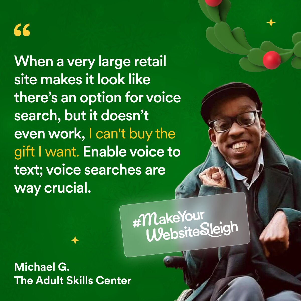 To spread awareness for web accessibility and bring these stats to eCommerce businesses everywhere an amazing group of influencers with disabilities shared more about their online shopping experiences. Hopefully, now more eCommerce businesses understand that consumers with disabilities are an important demographic in gift shopping this holiday season, and it’s up to them to make it happen.