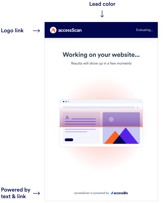 - If you won’t provide a resultsLogo link (your logo link), the accessScan logo will appear instead