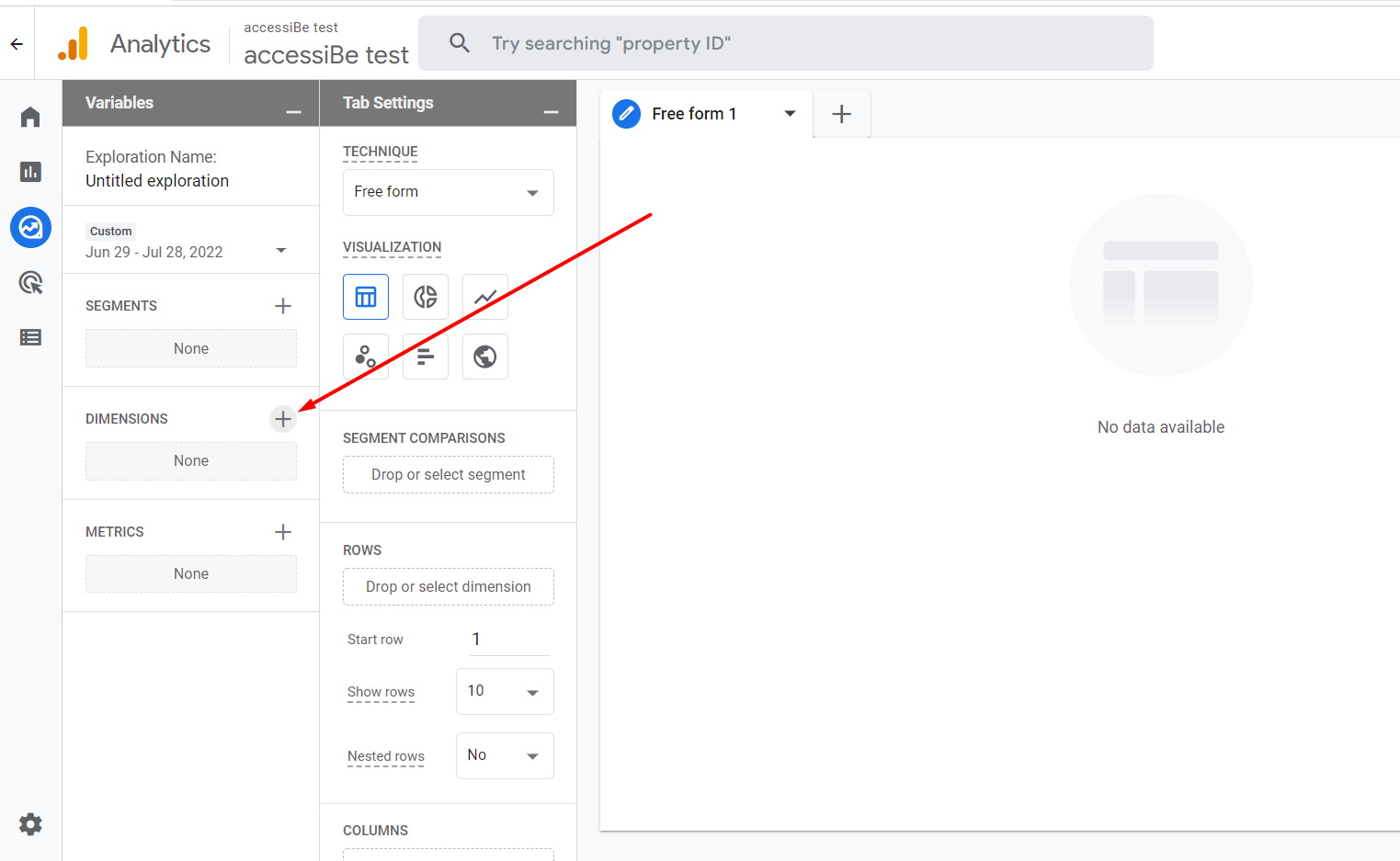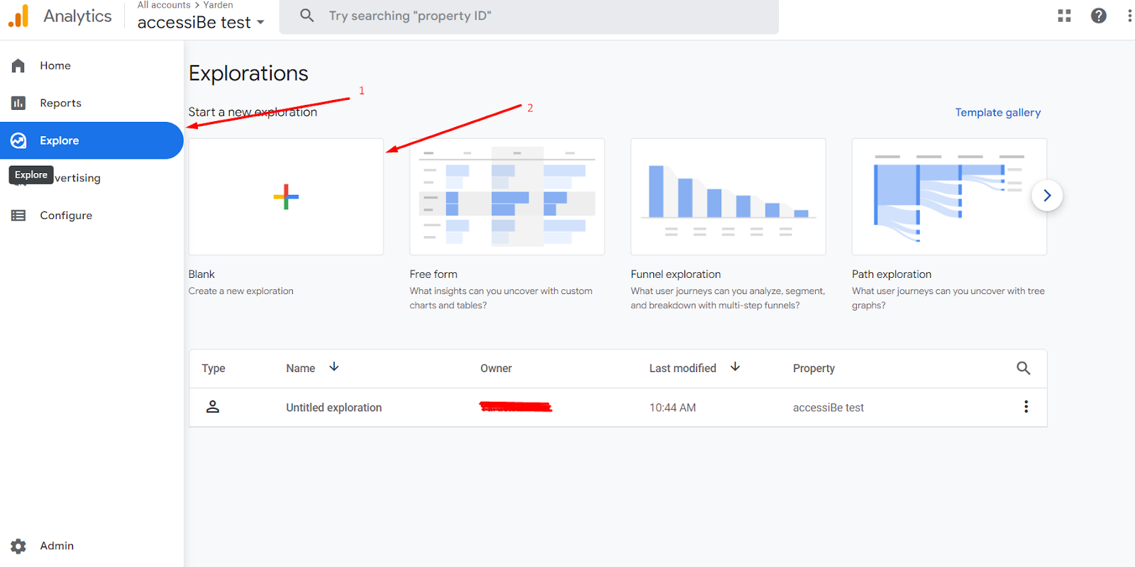 1. In your Google Analytics 4 account, click “Explore”, then click “Blank”